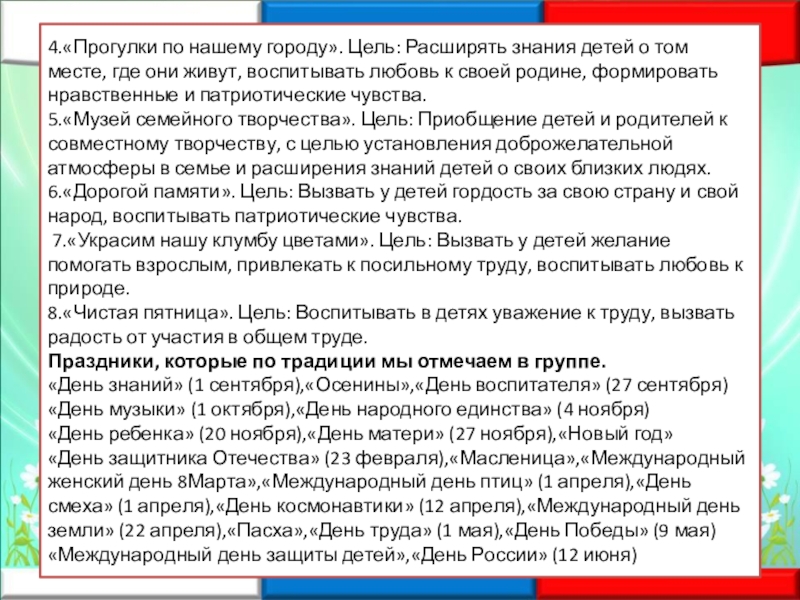 Создание групповых традиций в детском саду и их передача следующему поколению