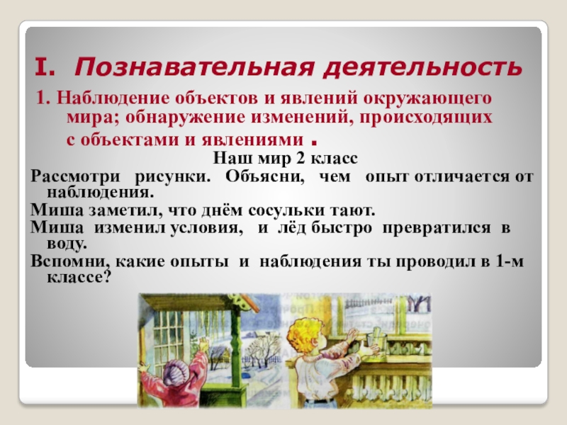 Вспомни, какие опыты и наблюдения ты проводил в 1-м классе?
