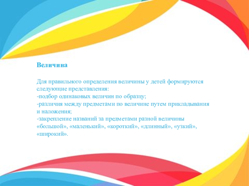 -закрепление названий за предметами разной величины «большой», «маленький», «короткий», «длинный», «узкий», «широкий».