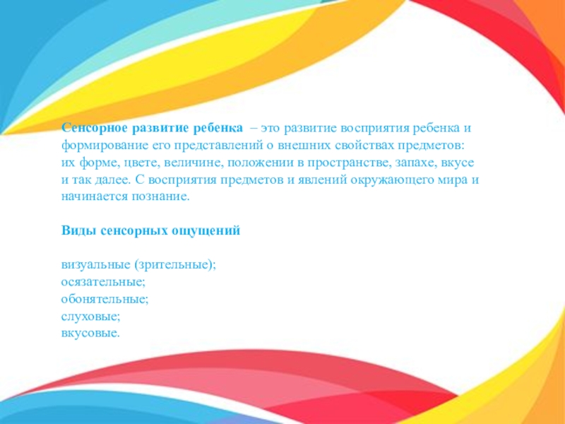 Сенсорное развитие ребенка – это развитие восприятия ребенка и формирование его