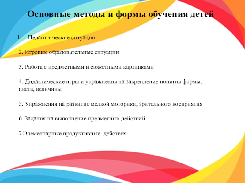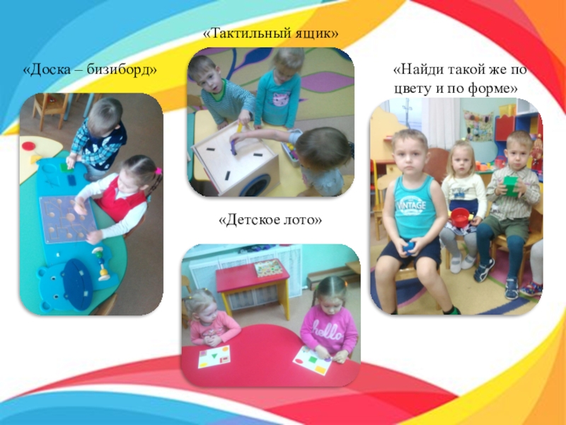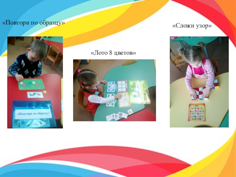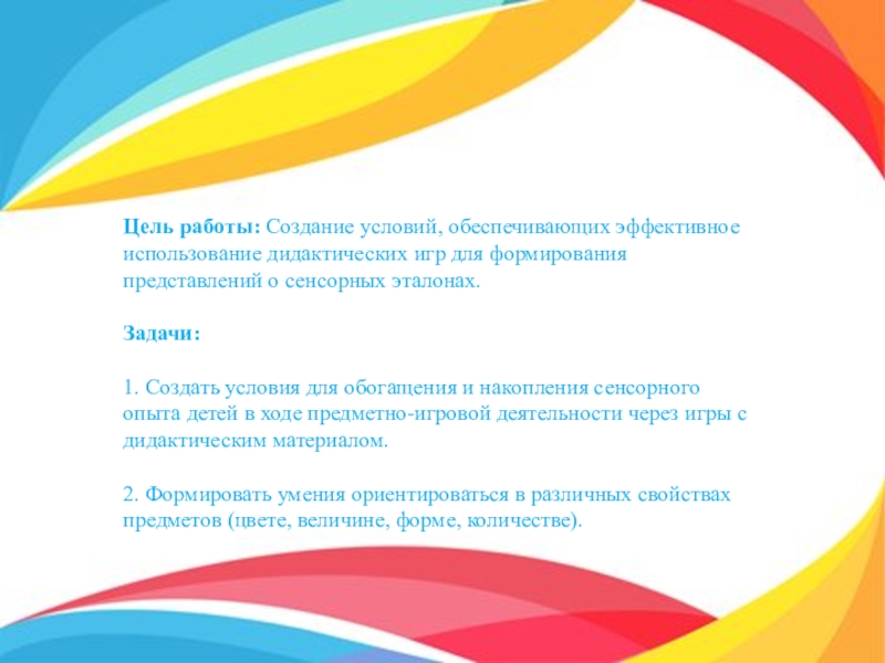 1. Создать условия для обогащения и накопления сенсорного опыта детей в ходе предметно-игровой деятельности через игры с дидактическим материалом.