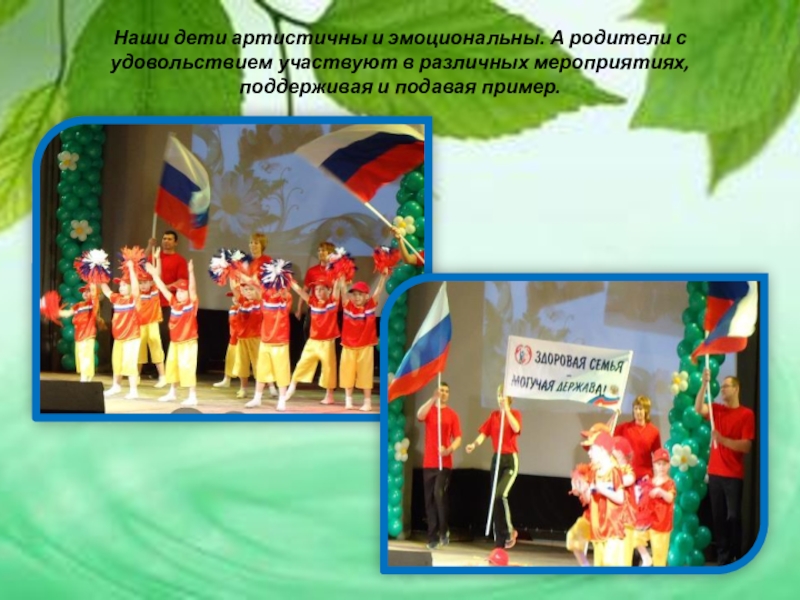 Слайд 29Наши дети артистичны и эмоциональны. А родители с удовольствием участвуют в