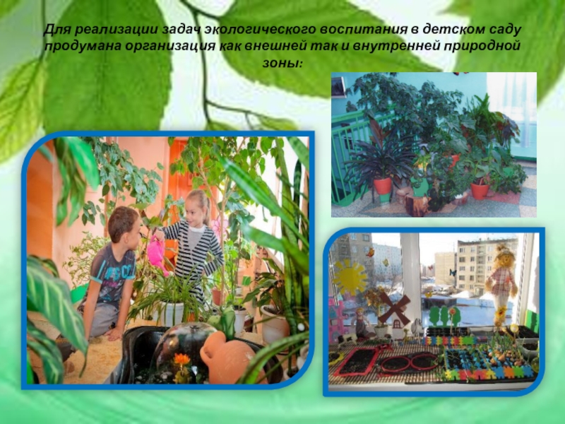 Для реализации задач экологического воспитания в детском саду продумана организация как