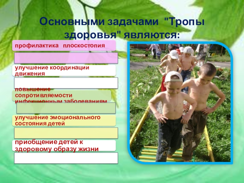 Цель создания «Тропы здоровья» проводить профилактику и коррекцию здоровья детей в