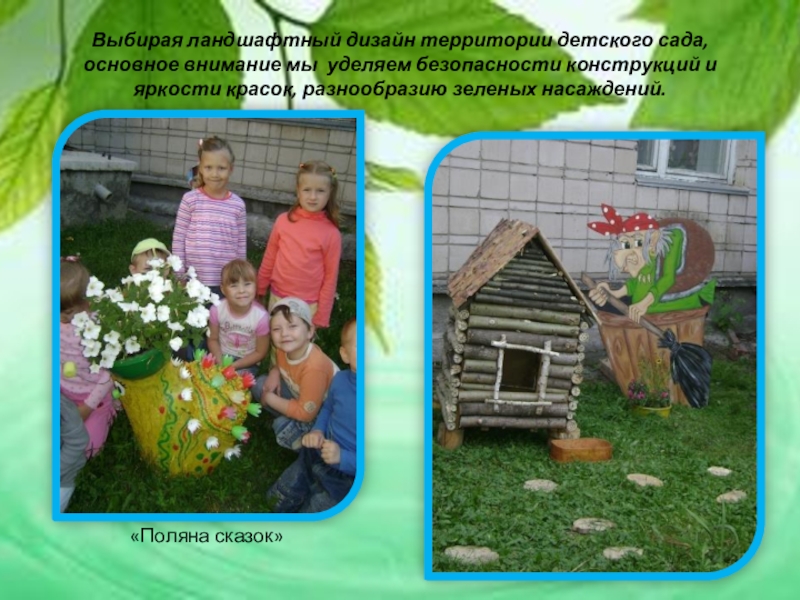 Выбирая ландшафтный дизайн территории детского сада, основное внимание мы уделяем безопасности