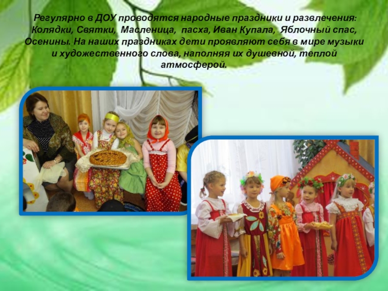 Регулярно в ДОУ проводятся народные праздники и развлечения: Колядки, Святки,