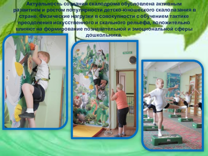 Слайд 20Актуальность создания скалодрома обусловлена активным развитием и ростом популярности детско-юношеского скалолазания