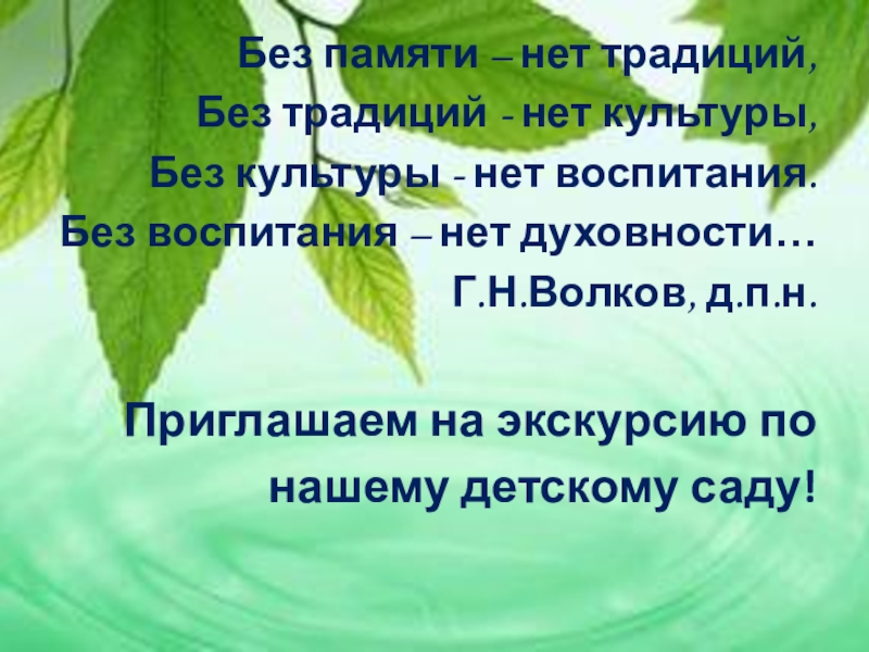 Презентация из опыта работы по теме «Приобщение дошкольников к ценностям народной культуры и природы родного края как основа духовно – нравственного и патриотического воспитания»