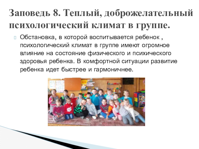 Заповедь 8. Теплый, доброжелательный психологический климат в группе.