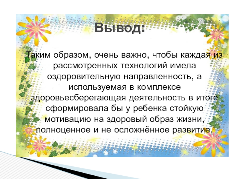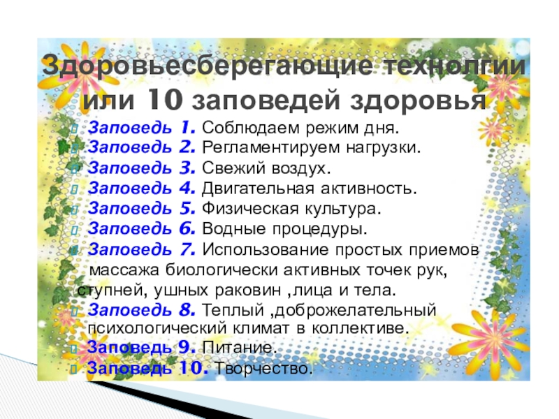 Здоровьесберегающие технолгии или 10 заповедей здоровья