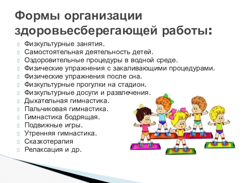 Формы организации здоровьесберегающей работы: