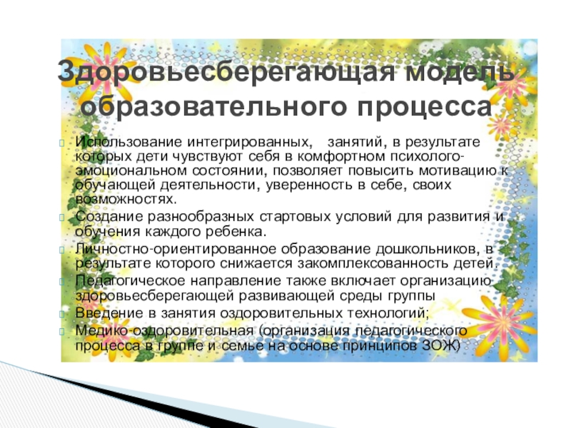 Здоровьесберегающая модель образовательного процесса