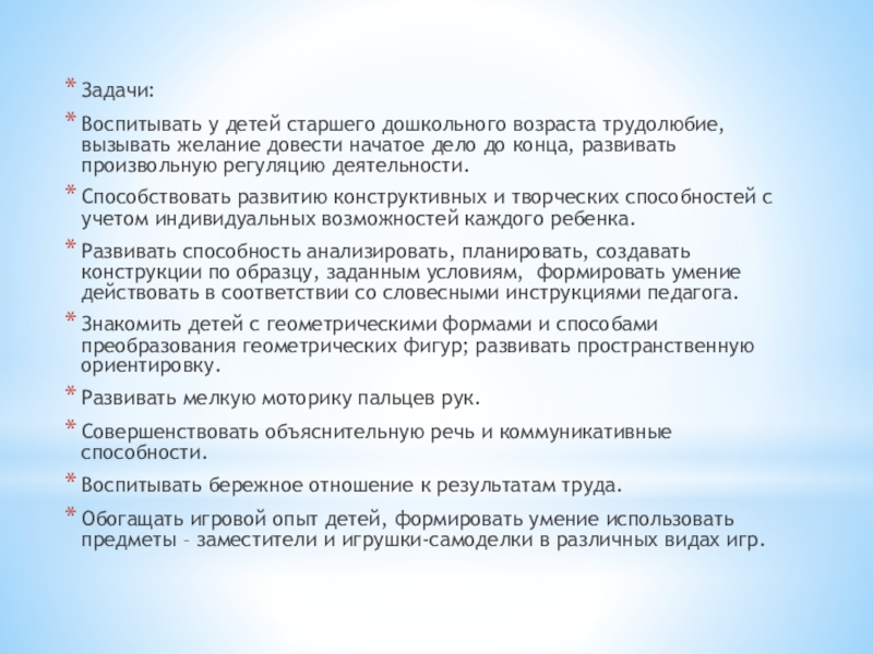 Воспитывать у детей старшего дошкольного возраста трудолюбие, вызывать желание довести начатое