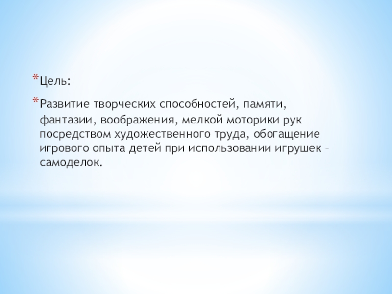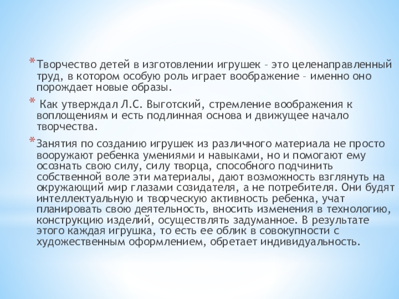 Слайд 7Творчество детей в изготовлении игрушек – это целенаправленный труд, в котором