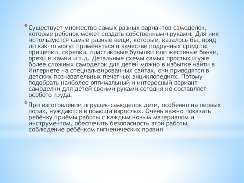 Слайд 5Существует множество самых разных вариантов самоделок, которые ребенок может создать собственными