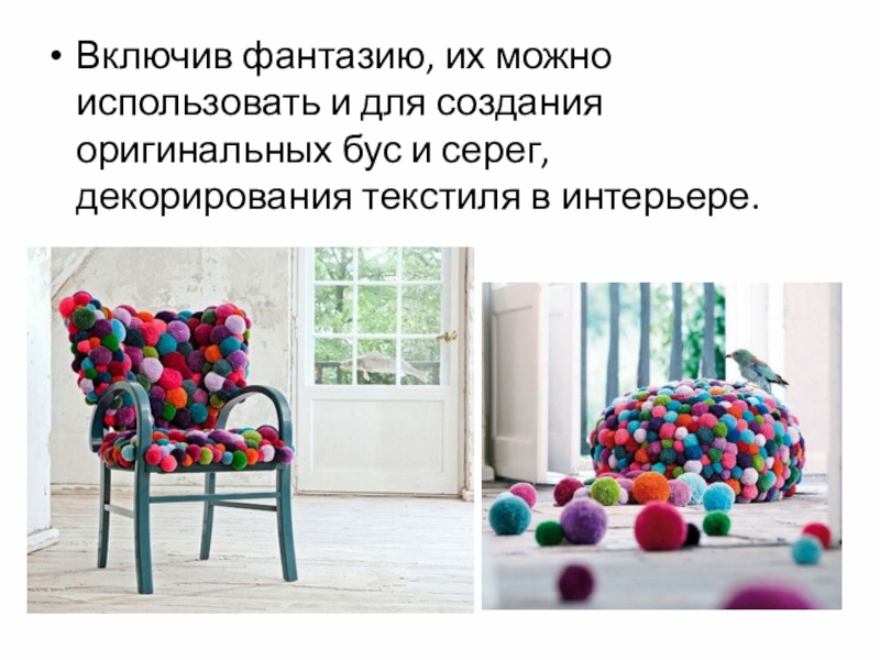 Слайд 5Помпоны или, как мы их часто ласково называем, бомбошки давно и