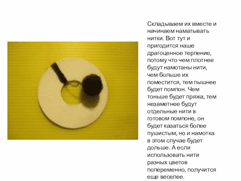 Слайд 8Складываем их вместе и начинаем наматывать нитки. Вот тут и пригодится