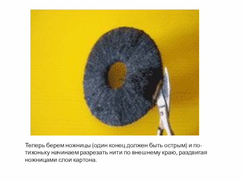 Слайд 9Теперь берем ножницы (один конец должен быть острым) и по-тихоньку начинаем