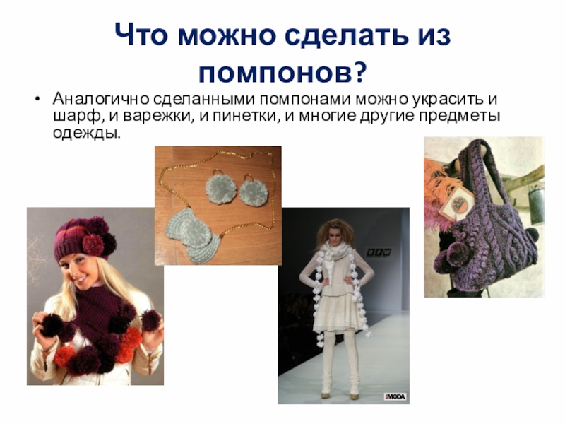 нити). Помпоном можно украсить и готовое изделие, купленное в магазине.
