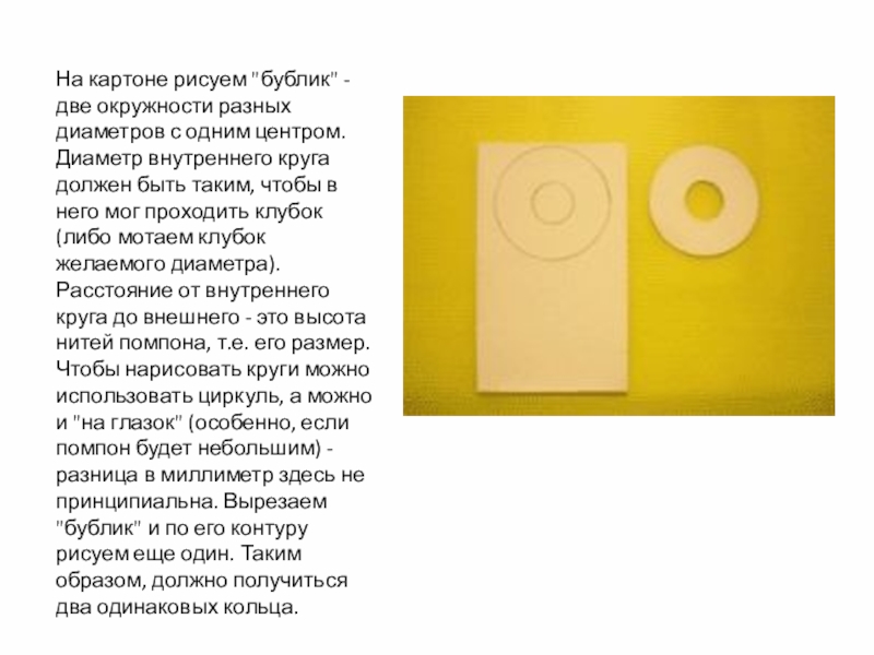 Слайд 7На картоне рисуем "бублик" - две окружности разных диаметров с одним