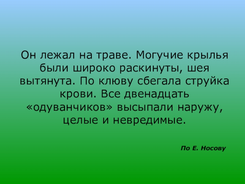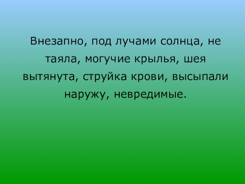 Внезапно, под лучами солнца, не таяла, могучие крылья, шея вытянута, струйка крови, высыпали наружу, невредимые.
