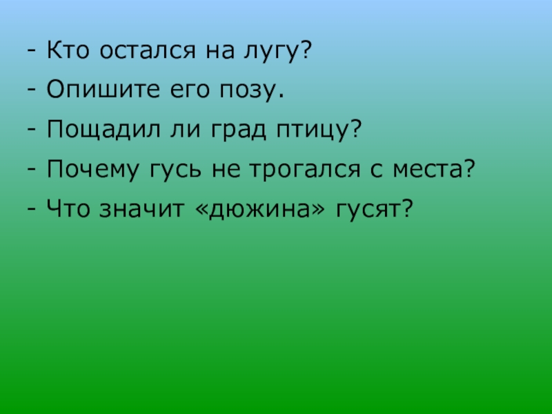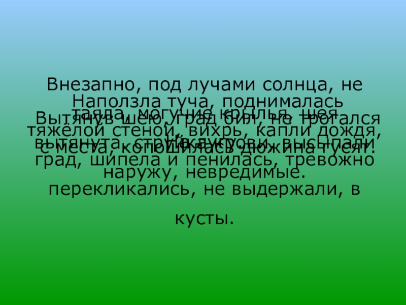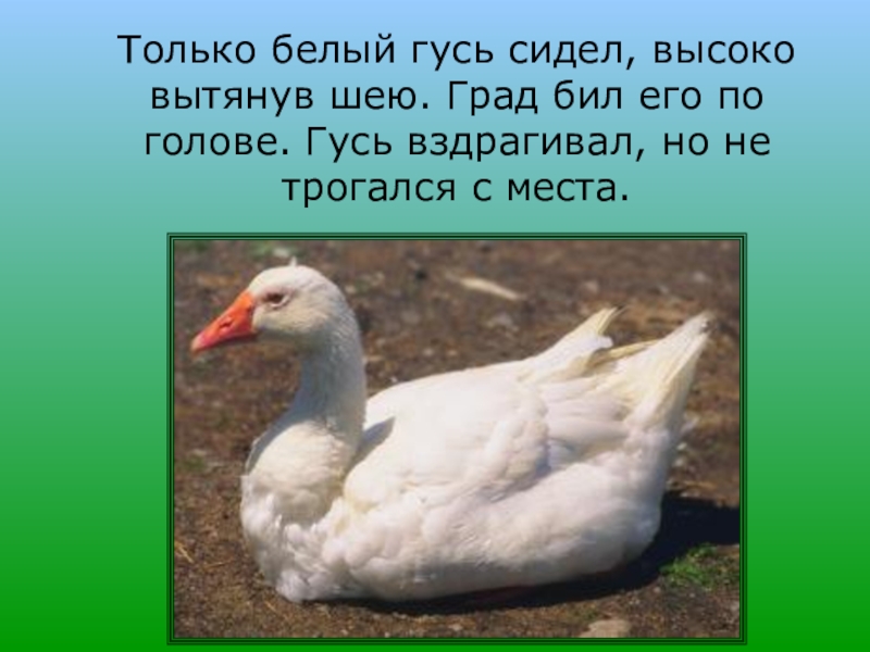 Вытянув шею, град бил, не трогался с места, копошилась дюжина гусят.