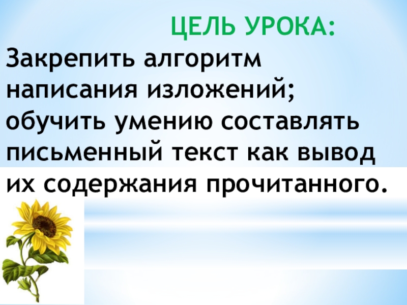 Выполнила Даутова Алсу ГабидиновнаУчимся писать изложение. Изложение Подсолнух