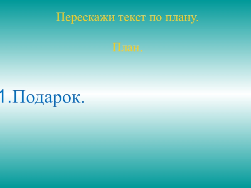 Перескажи текст по плану.План.Подарок.