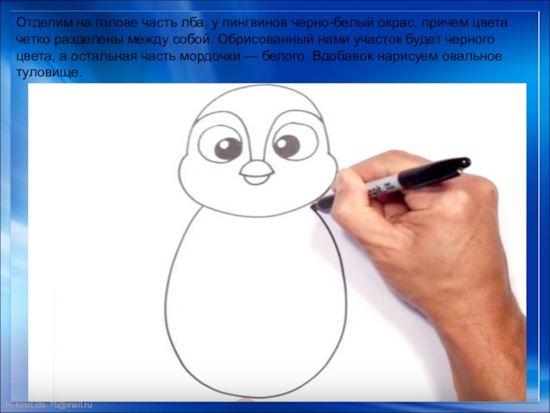 Слайд 9Отделим на голове часть лба: у пингвинов черно-белый окрас, причем цвета