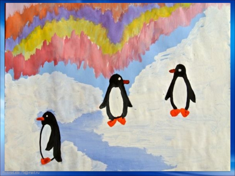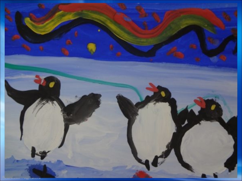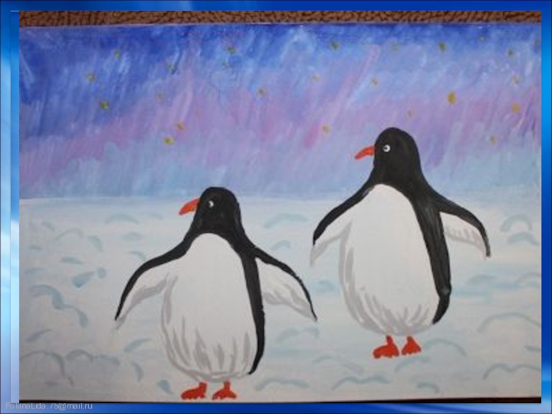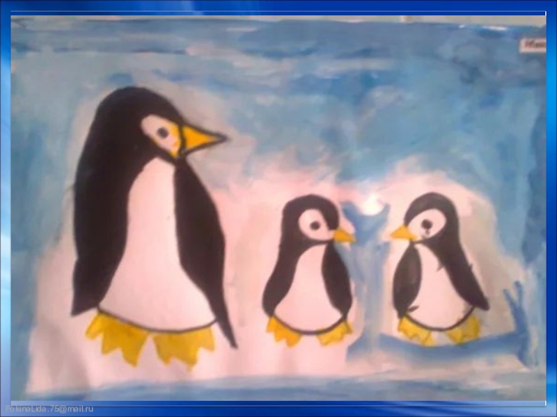 Презентация, доклад ИЗО. Пингвины. 1 класс.