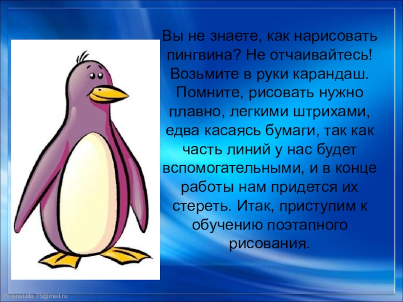 Слайд 3Вы не знаете, как нарисовать пингвина? Не отчаивайтесь! Возьмите в руки