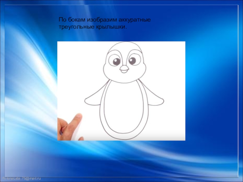 Слайд 11По бокам изобразим аккуратные треугольные крылышки.