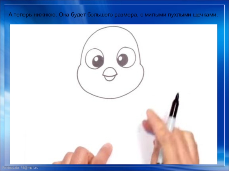 Слайд 8А теперь нижнюю. Она будет большего размера, с милыми пухлыми щечками.