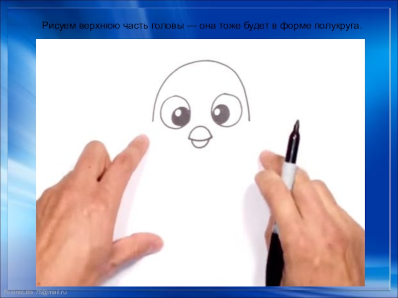 Слайд 7Рисуем верхнюю часть головы — она тоже будет в форме полукруга.