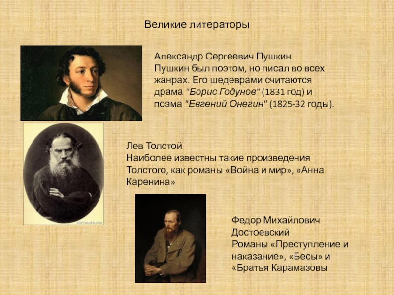 Наиболее известны такие произведения Толстого, как романы «Война и мир», «Анна Каренина»