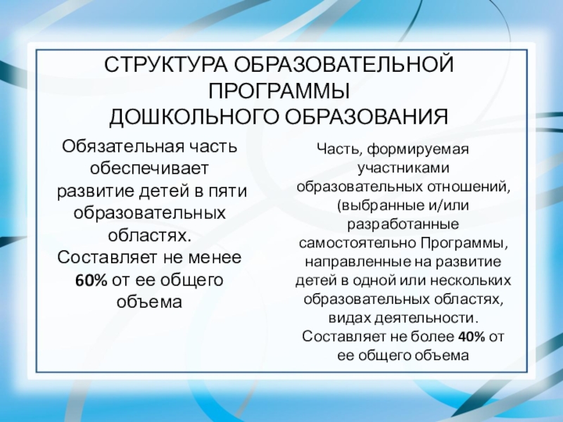 Обязательная часть обеспечивает развитие детей в пяти образовательных областях.