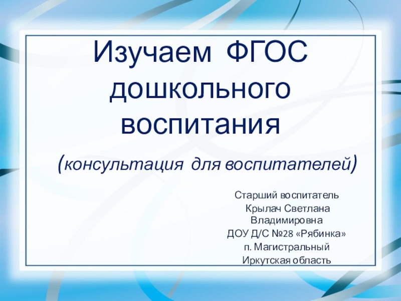 Формирование социокультурной образовательной среды дошкольного детства