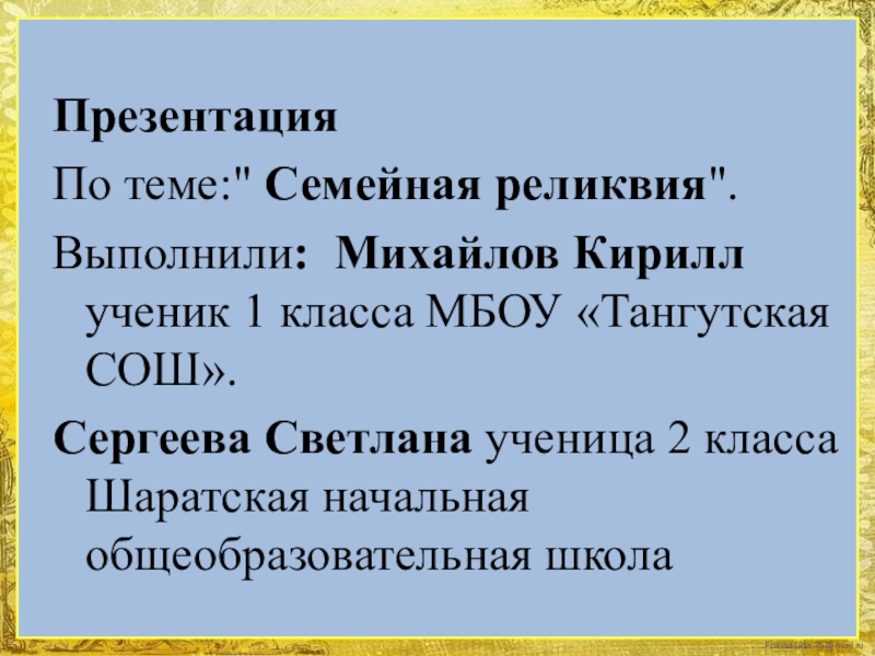 Презентация, доклад ( изучение истории своего рода) Семейная реликвия