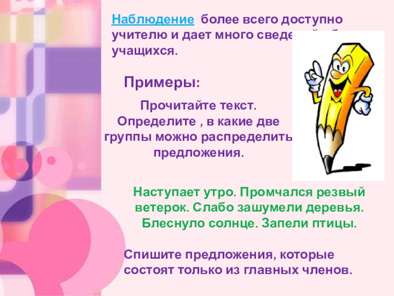 Прочитайте текст. Определите , в какие две группы можно распределить предложения.
