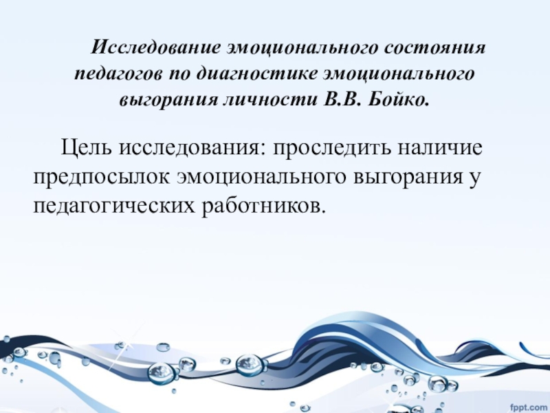 Слайд 2 Исследование эмоционального состояния педагогов по диагностике эмоционального выгорания личности В.В. Бойко.