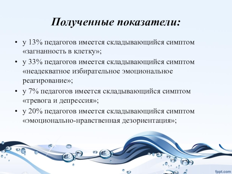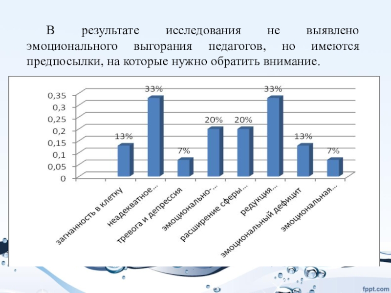 Слайд 4 В результате исследования не выявлено эмоционального выгорания педагогов, но имеются предпосылки,