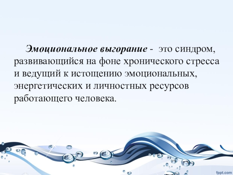 Слайд 3 Эмоциональное выгорание - это синдром, развивающийся на фоне хронического стресса и