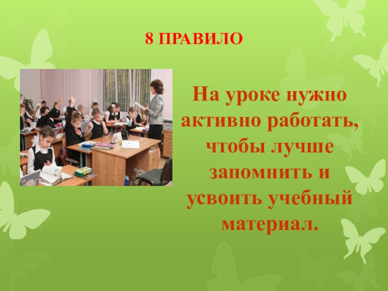 8 ПРАВИЛО  На уроке нужно активно работать, чтобы лучше запомнить и усвоить учебный материал.
