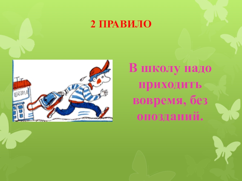 2 ПРАВИЛО  В школу надо приходить вовремя, без опозданий.
