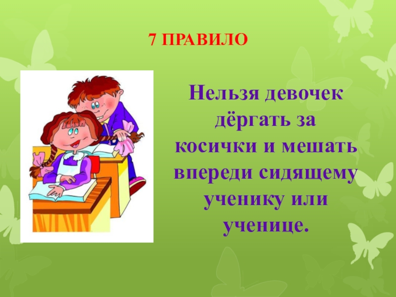 7 ПРАВИЛО  Нельзя девочек дёргать за косички и мешать впереди сидящему ученику или ученице.