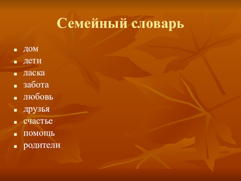 Семейный словарьдомдетиласказаботалюбовьдрузьясчастьепомощьродители