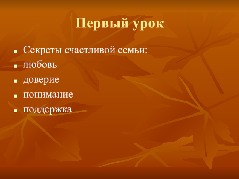 Первый урокСекреты счастливой семьи: любовьдовериепониманиеподдержка
