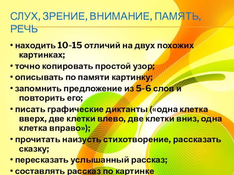 • восстанавливать последовательность событий (что было сначала, потом); раскладывать картинки в правильной последовательности.