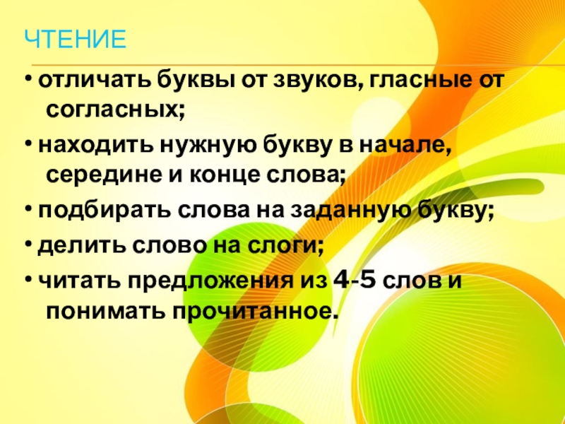 • читать предложения из 4-5 слов и понимать прочитанное.