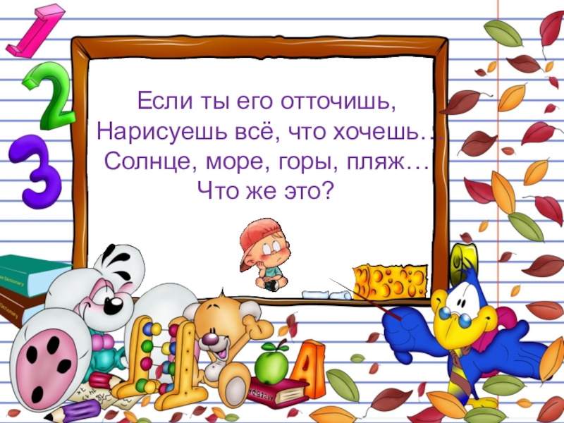 Если ты его отточишь,Нарисуешь всё, что хочешь…Солнце, море, горы, пляж…Что же это?